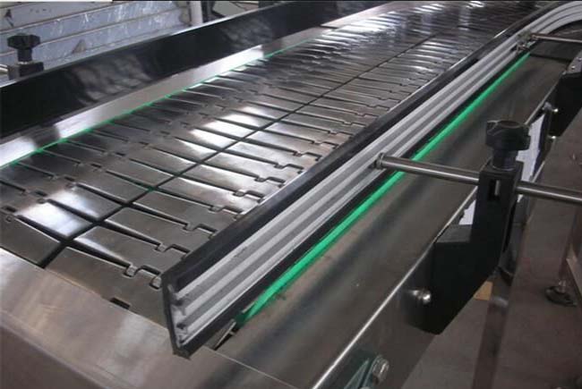 鏈板輸送機是以鏈板為載體,進行輸送物料,從而滿足飲料貼標、灌裝、清洗設(shè)備的單列輸送的要求,鏈板輸送機利用固接在牽引鏈上的一系列鏈板在水平或傾斜方向輸送物料的輸送設(shè)備。常見的鏈板輸送機形式以水平、爬坡、循環(huán)、環(huán)形輸送為主,使用的環(huán)境也各不相同,它被廣泛應(yīng)用在包裝、飲料生產(chǎn)、機械制造非常廣泛的應(yīng)用。